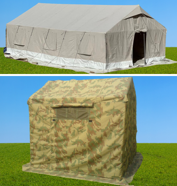 A variety of sizes and colors of School, Shelter and Latrine tents.