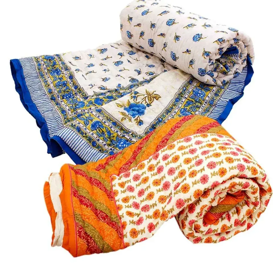 Explore our diverse selection of quilts, available in a wide array of sizes and vibrant colors to suit any decor. Whether you prefer the softness of cotton or the warmth of polyester-filled options, we have the perfect quilt for you. Embrace comfort and style with our extensive range, designed to meet your unique needs and preferences.