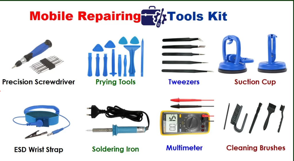 Various types and sizes of tools utilized by a professional Mobile repairing technician