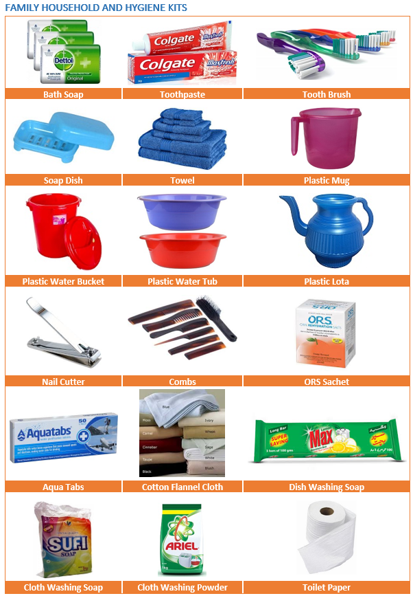 A diverse range of essential items that are utilized on a daily basis for maintaining personal and family hygiene during emergency situations. These items are crucial for ensuring that individuals can effectively manage cleanliness and health when regular hygiene practices are disrupted.