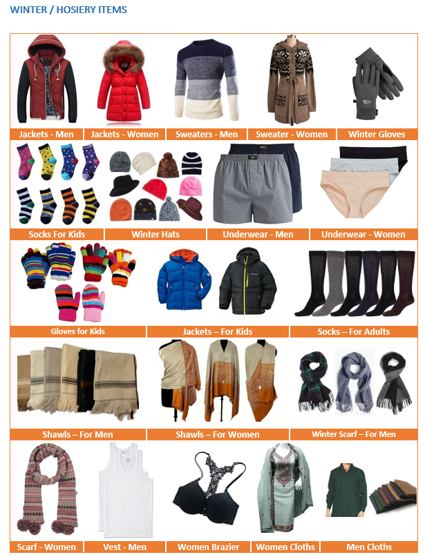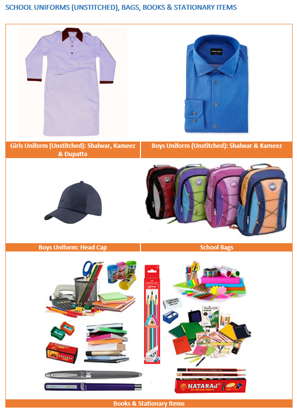 Essential items for health, comfort, and education support.