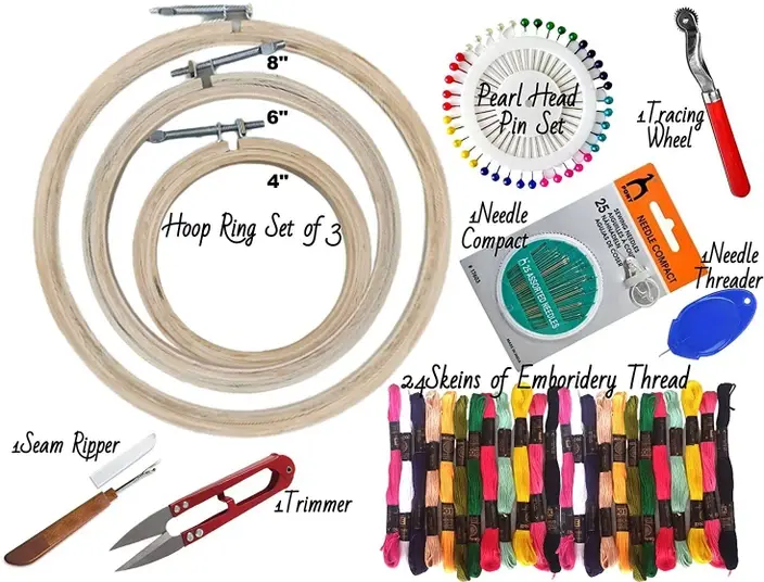 A variety of tools, differing in types and sizes, are employed by professional tailors in the dressmaking process.